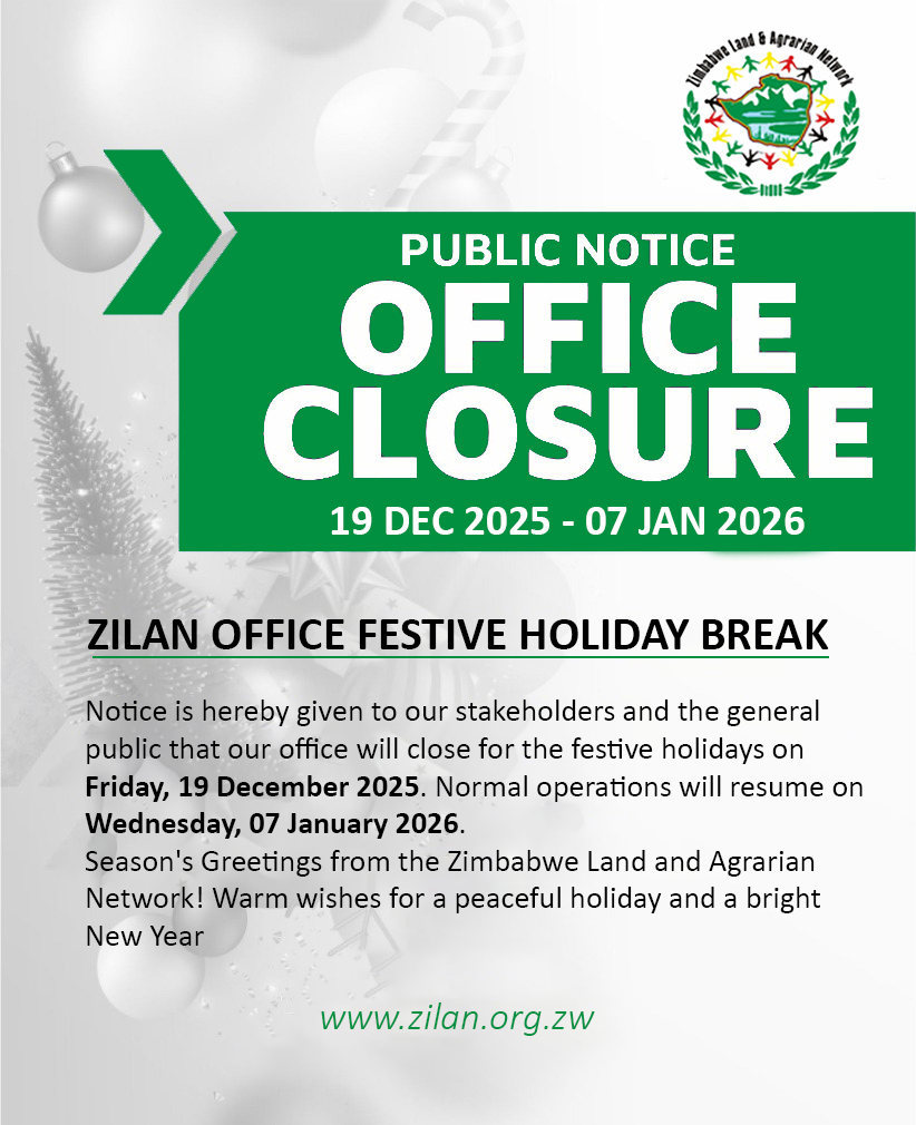 The Zimbabwe Land and Agrarian Network (ZiLAN) aims to improve the participation of CSOs in lobbying and advocating for land and agrarian policies in favor of small producers, most of whom are women. ZiLAN brings different land NGOs under a formalized Network to “speak” with a unified strong voice on land and agrarian policy issues in Zimbabwe, as well as share information, contacts and experiences. The network currently has a membership of over 30 organizations.